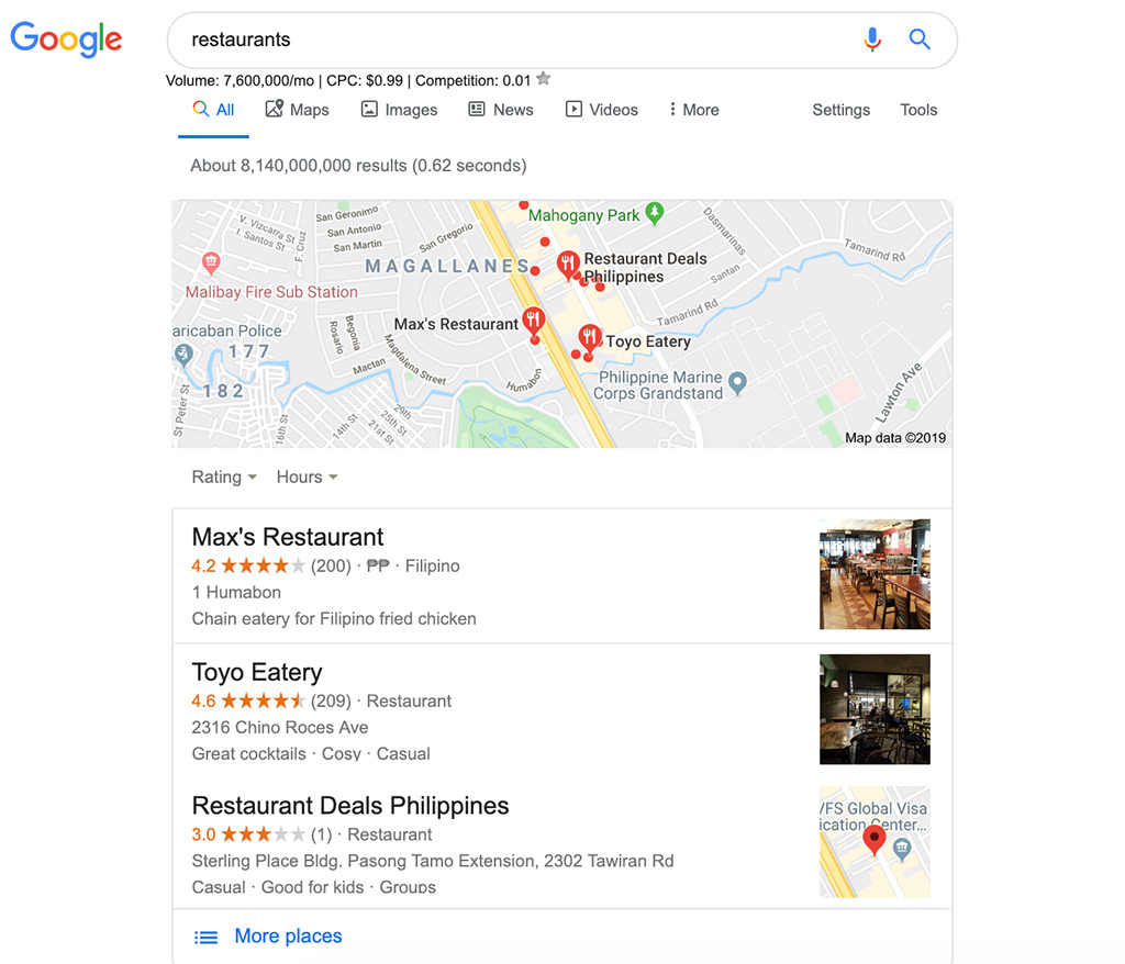 You'd probably whip out your smartphone, to see which restaurant to eat at, or which cafe to hang out in, etc. Let's face it; it's normal nowadays. In fact, 46% of Google searches are of local intent. Don’t believe us? This data on the most searched “near me” keywords in the Philippines proves just that.